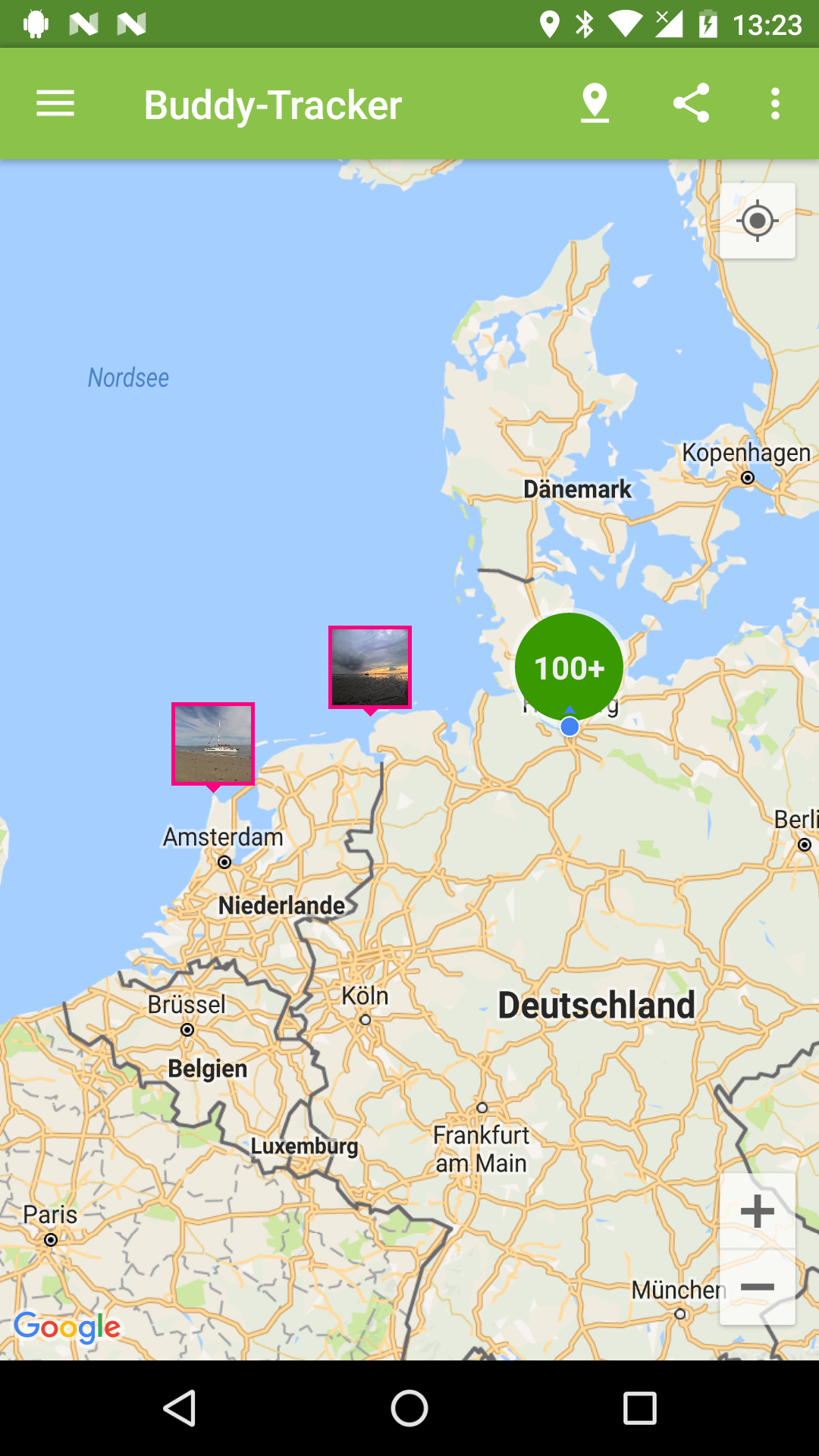 Technisch ist hier die Berechtigung auf den externen Speicher des Geräts zuzugreifen in ein separates Modul ausgelagert worden. Das Modul befragt den Media-Store von Android nach den Bildinformationen und greift dann ggf. auf das dort referenzierte Bild zu. Diese Referenz wird dann an den Buddy-Tracker weiter gereicht, der dazu dann diese Berechtigung nicht selber halten muß.